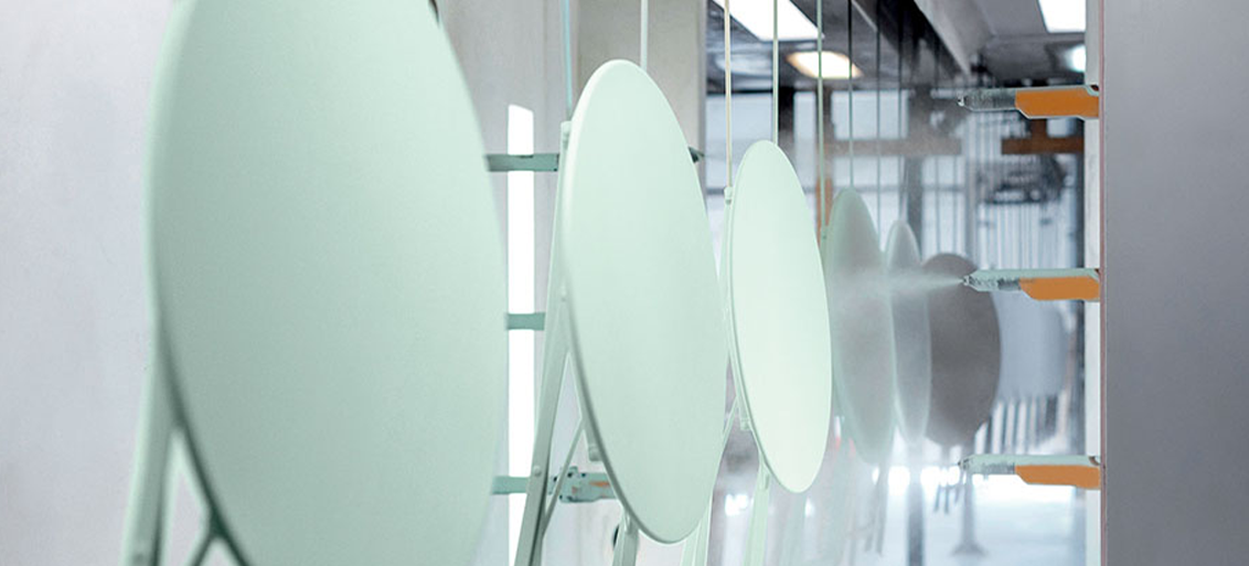 Was bedeutet es, französischer Hersteller zu sein? Viele Menschen, die unsere Kollektionen entwickeln, sie gestalten, herstellen und in unseren Werkstätten darauf achten, dass sie den Normen entsprechen. Eine Lackieranlage mit hochleistungsfähigen Robotern, die für höchste Qualität sorgen, Passion … und Geduld. 2 Jahre – so lange braucht es, um unsere Produkte zur Marktreife zu führen. Mit der richtigen Behandlung, entwickelt für lange Haltbarkeit, Streben nach perfekter Ergonomie und höchstem Komfort, nehmen unsere Möbel in unseren Werken in Frankreich ihre wahre Form an.